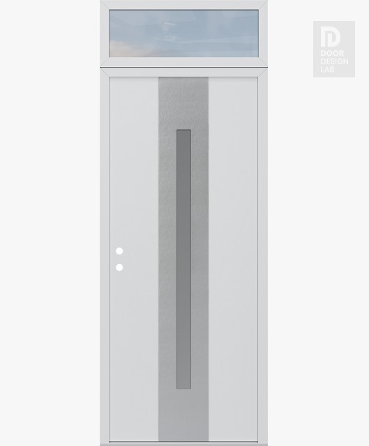 Modern Steel Front Door DIAMOND A2 36" X 96" BLACK/WHITE FROSTED GLASS PANEL STAINLESS STEEL LHI WITH TRANSOM CLEAR GLASS