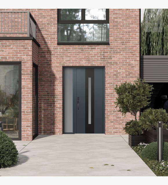 Modern Steel Front Door DIAMOND A2 48" X 80" ANTHRACITE/ANTHRACITE FROSTED GLASS PANEL BLACK RHI WITH SIDELITE FROSTED GLASS