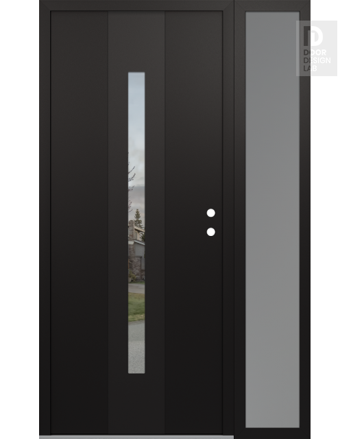 Modern Steel Front Door DIAMOND A2 48" X 80" BLACK/BLACK CLEAR GLASS PANEL BLACK RHI WITH SIDELITE FROSTED GLASS