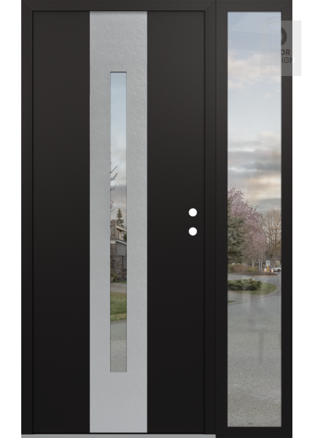 Modern Steel Front Door DIAMOND A2 48" X 80" BLACK/BLACK CLEAR GLASS PANEL STAINLESS STEEL RHI WITH SIDELITE CLEAR GLASS
