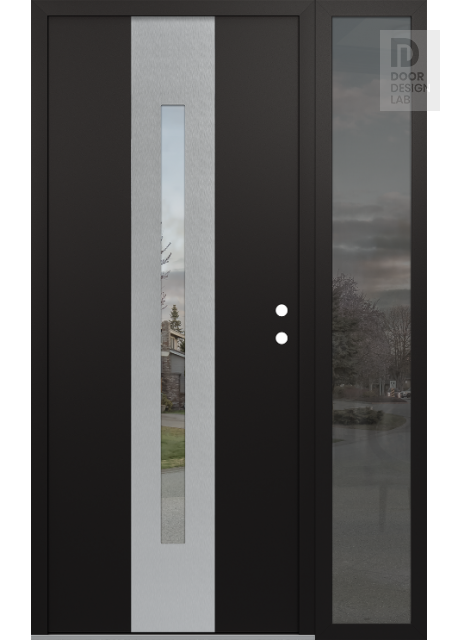 Modern Steel Front Door DIAMOND A2 48" X 80" BLACK/BLACK CLEAR GLASS PANEL STAINLESS STEEL RHI WITH SIDELITE MIRRORED GLASS