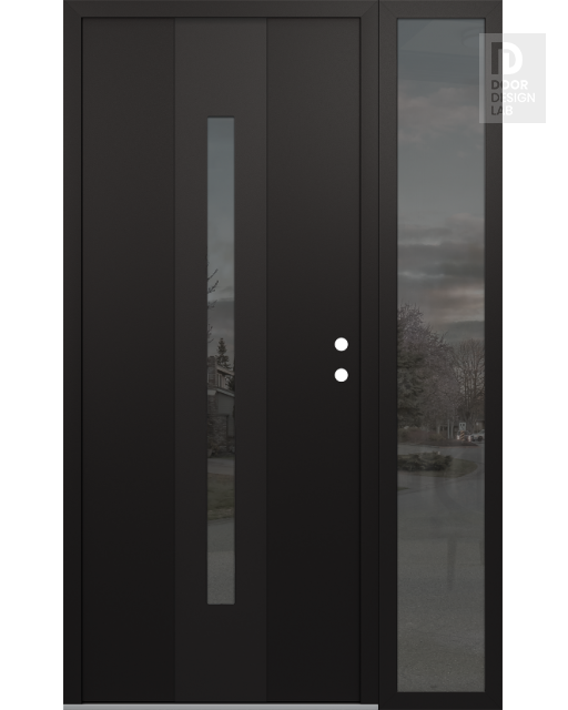 Modern Steel Front Door DIAMOND A2 48" X 80" BLACK/BLACK MIRRORED GLASS PANEL BLACK RHI WITH SIDELITE MIRRORED GLASS