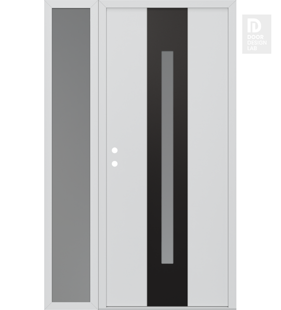 Modern Steel Front Door DIAMOND A2 48" X 80" BLACK/WHITE FROSTED GLASS PANEL BLACK LHI WITH SIDELITE FROSTED GLASS