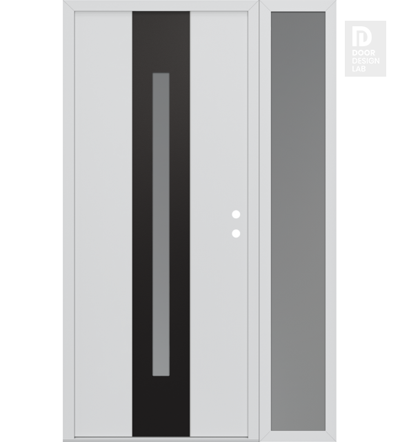Modern Steel Front Door DIAMOND A2 48" X 80" BLACK/WHITE FROSTED GLASS PANEL BLACK RHI WITH SIDELITE FROSTED GLASS