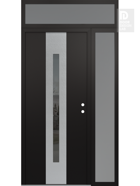 Modern Steel Front Door DIAMOND A2 48" X 96" BLACK/BLACK MIRRORED GLASS PANEL STAINLESS STEEL RHI WITH SIDELITE AND TRANSOM FROSTED GLASS