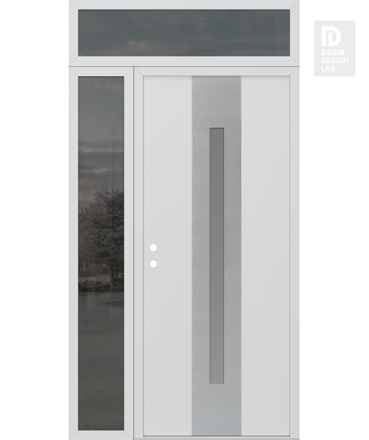 Modern Steel Front Door DIAMOND A2 48" X 96" BLACK/WHITE FROSTED GLASS PANEL STAINLESS STEEL LHI WITH SIDELITE AND TRANSOM MIRRORED GLASS