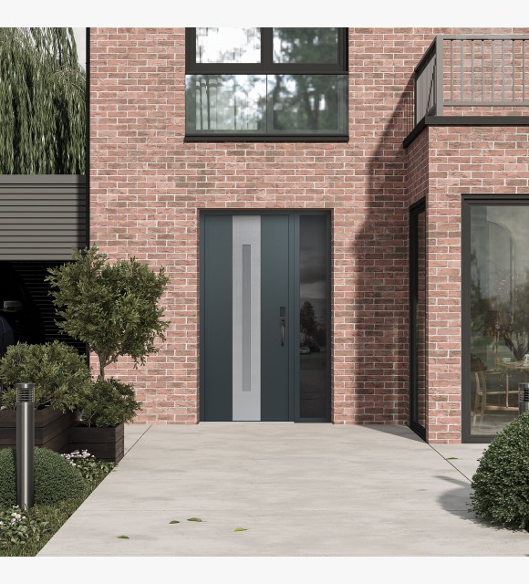 Modern Steel Front Door DIAMOND A2 50" X 80" ANTHRACITE/ANTHRACITE FROSTED GLASS PANEL STAINLESS STEEL LHI WITH SIDELITE MIRRORED GLASS