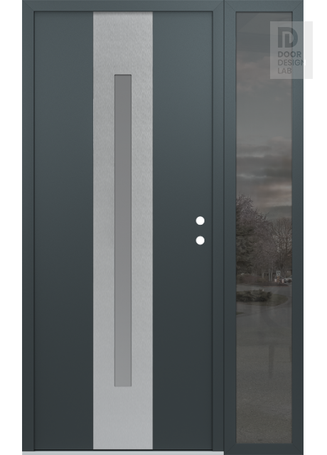 Modern Steel Front Door DIAMOND A2 50" X 80" ANTHRACITE/ANTHRACITE FROSTED GLASS PANEL STAINLESS STEEL RHI WITH SIDELITE MIRRORED GLASS
