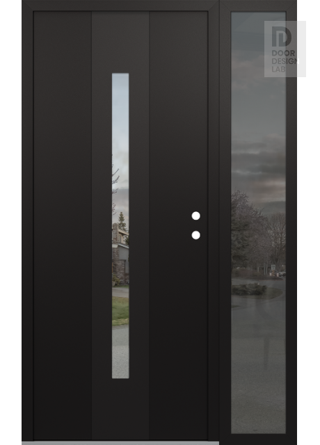 Modern Steel Front Door DIAMOND A2 50" X 80" BLACK/BLACK CLEAR GLASS PANEL BLACK RHI WITH SIDELITE MIRRORED GLASS