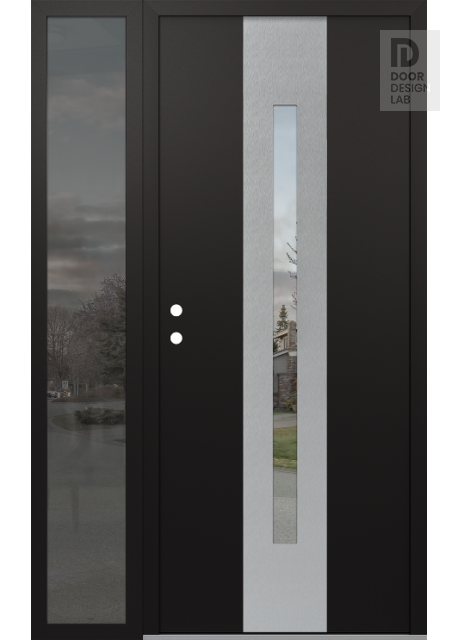 Modern Steel Front Door DIAMOND A2 50" X 80" BLACK/BLACK CLEAR GLASS PANEL STAINLESS STEEL LHI WITH SIDELITE MIRRORED GLASS