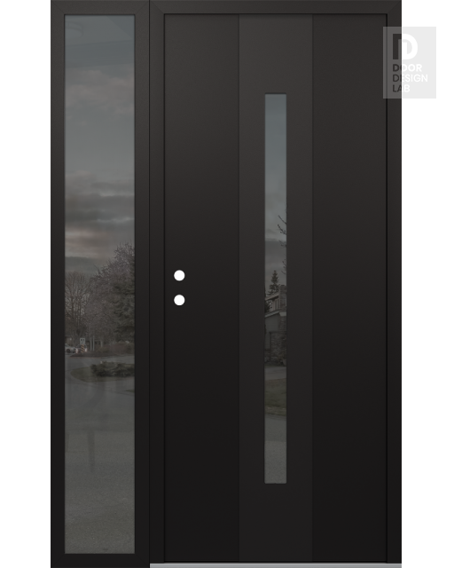 Modern Steel Front Door DIAMOND A2 50" X 80" BLACK/BLACK MIRRORED GLASS PANEL BLACK LHI WITH SIDELITE MIRRORED GLASS
