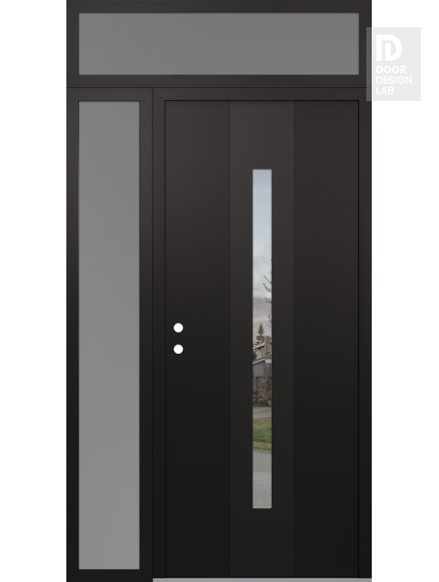 Modern Steel Front Door DIAMOND A2 50" X 96" BLACK/BLACK CLEAR GLASS PANEL BLACK LHI WITH SIDELITE AND TRANSOM FROSTED GLASS