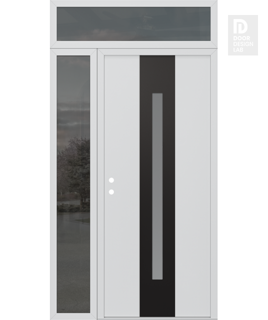 Modern Steel Front Door DIAMOND A2 50" X 96" BLACK/WHITE FROSTED GLASS PANEL BLACK LHI WITH SIDELITE AND TRANSOM MIRRORED GLASS