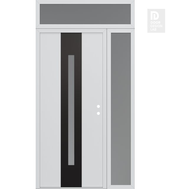 Modern Steel Front Door DIAMOND A2 50" X 96" BLACK/WHITE FROSTED GLASS PANEL BLACK RHI WITH SIDELITE AND TRANSOM FROSTED GLASS