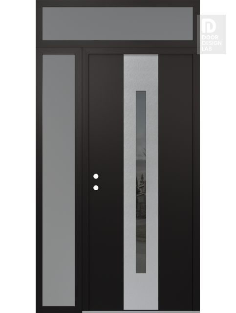 Modern Steel Front Door DIAMOND A2 52" X 96" BLACK/BLACK MIRRORED GLASS PANEL STAINLESS STEEL LHI WITH SIDELITE AND TRANSOM FROSTED GLASS