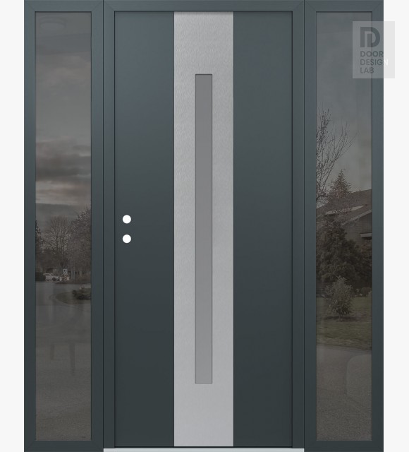 Modern Steel Front Door DIAMOND A2 60" X 80" ANTHRACITE/ANTHRACITE FROSTED GLASS PANEL STAINLESS STEEL LHI WITH 2 SIDELITES MIRRORED GLASS