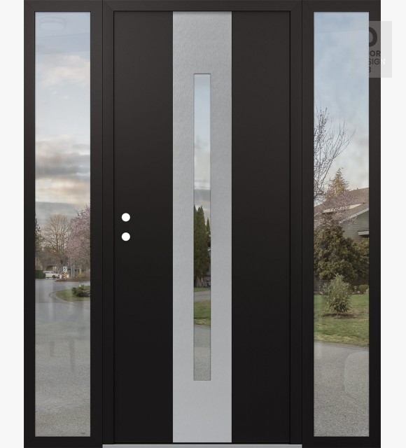 Modern Steel Front Door DIAMOND A2 60" X 80" BLACK/BLACK CLEAR GLASS PANEL STAINLESS STEEL LHI WITH 2 SIDELITES CLEAR GLASS
