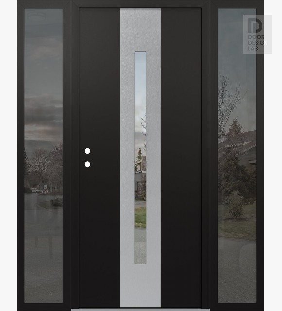 Modern Steel Front Door DIAMOND A2 60" X 80" BLACK/BLACK CLEAR GLASS PANEL STAINLESS STEEL LHI WITH 2 SIDELITES MIRRORED GLASS