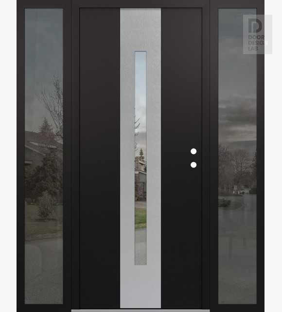 Modern Steel Front Door DIAMOND A2 60" X 80" BLACK/BLACK CLEAR GLASS PANEL STAINLESS STEEL RHI WITH 2 SIDELITES MIRRORED GLASS