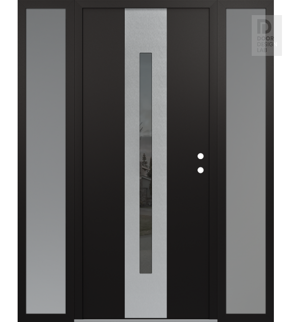 Modern Steel Front Door DIAMOND A2 60" X 80" BLACK/BLACK MIRRORED GLASS PANEL STAINLESS STEEL RHI WITH 2 SIDELITES FROSTED GLASS