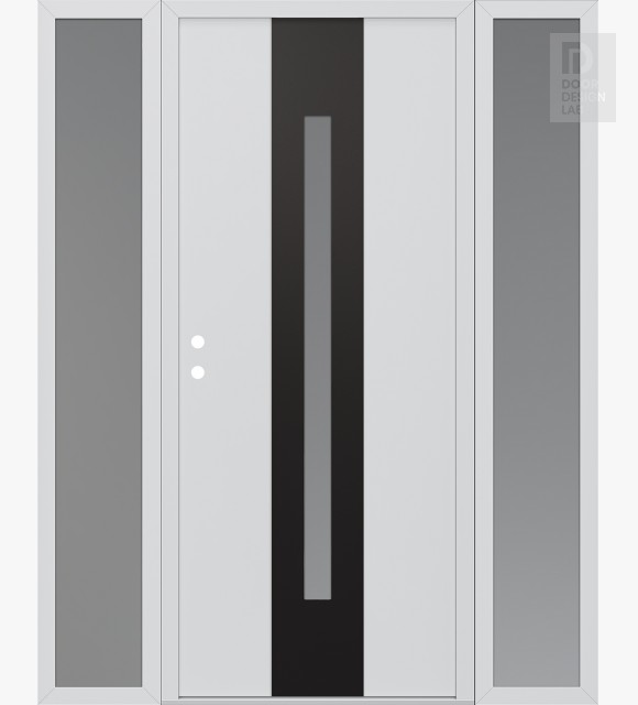 Modern Steel Front Door DIAMOND A2 60" X 80" BLACK/WHITE FROSTED GLASS PANEL BLACK LHI WITH 2 SIDELITES FROSTED GLASS