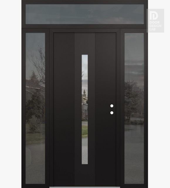 Modern Steel Front Door DIAMOND A2 60" X 96" BLACK/BLACK CLEAR GLASS PANEL BLACK RHI WITH 2 SIDELITES AND TRANSOM MIRRORED GLASS