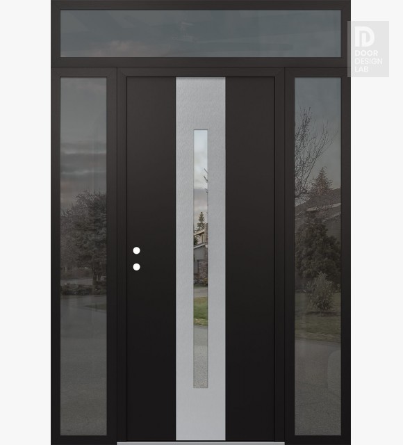 Modern Steel Front Door DIAMOND A2 60" X 96" BLACK/BLACK CLEAR GLASS PANEL STAINLESS STEEL LHI WITH 2 SIDELITES AND TRANSOM MIRRORED GLASS