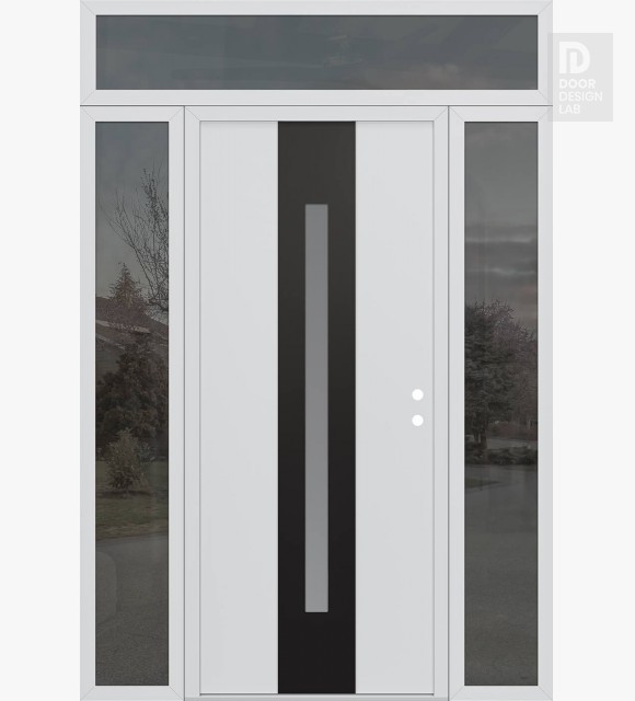 Modern Steel Front Door DIAMOND A2 60" X 96" BLACK/WHITE FROSTED GLASS PANEL BLACK RHI WITH 2 SIDELITES AND TRANSOM MIRRORED GLASS