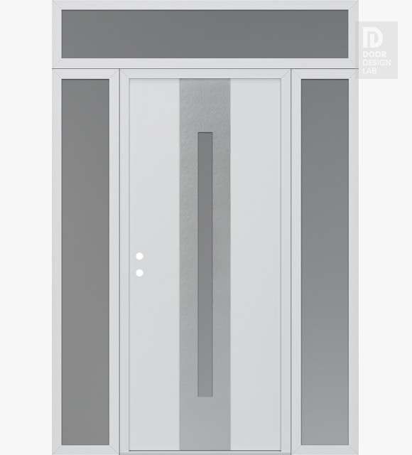 Modern Steel Front Door DIAMOND A2 60" X 96" BLACK/WHITE FROSTED GLASS PANEL STAINLESS STEEL LHI WITH 2 SIDELITES AND TRANSOM FROSTED GLASS