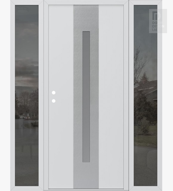 Modern Steel Front Door DIAMOND A2 64" X 80" BLACK/WHITE FROSTED GLASS PANEL STAINLESS STEEL LHI WITH 2 SIDELITES MIRRORED GLASS