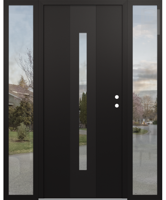 Modern Steel Front Door DIAMOND A2 68" X 80" BLACK/BLACK CLEAR GLASS PANEL BLACK RHI WITH 2 SIDELITES CLEAR GLASS