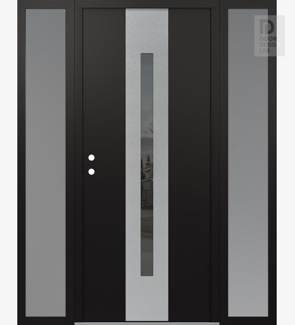 Modern Steel Front Door DIAMOND A2 68" X 80" BLACK/BLACK MIRRORED GLASS PANEL STAINLESS STEEL LHI WITH 2 SIDELITES FROSTED GLASS