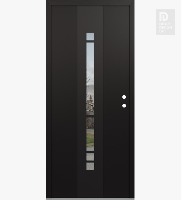 Modern Steel Front Door DIAMOND A3 36" X 80" BLACK/BLACK CLEAR GLASS PANEL BLACK RHI