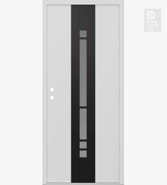 Modern Steel Front Door DIAMOND A3 36" X 80" BLACK/WHITE FROSTED GLASS PANEL BLACK LHI