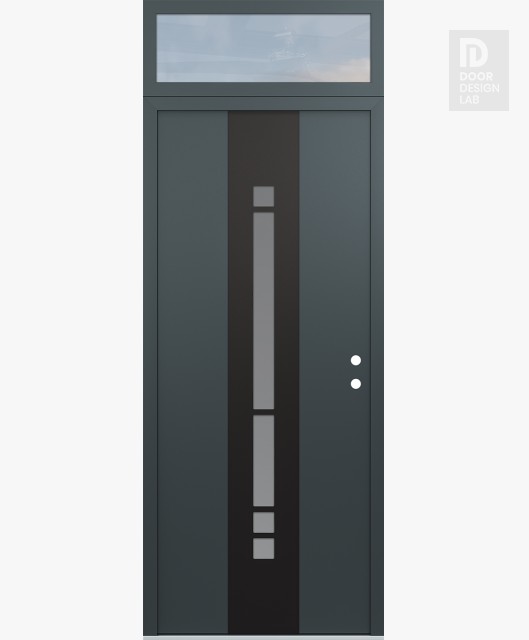 Modern Steel Front Door DIAMOND A3 36" X 96" ANTHRACITE/ANTHRACITE FROSTED GLASS PANEL BLACK RHI WITH TRANSOM CLEAR GLASS