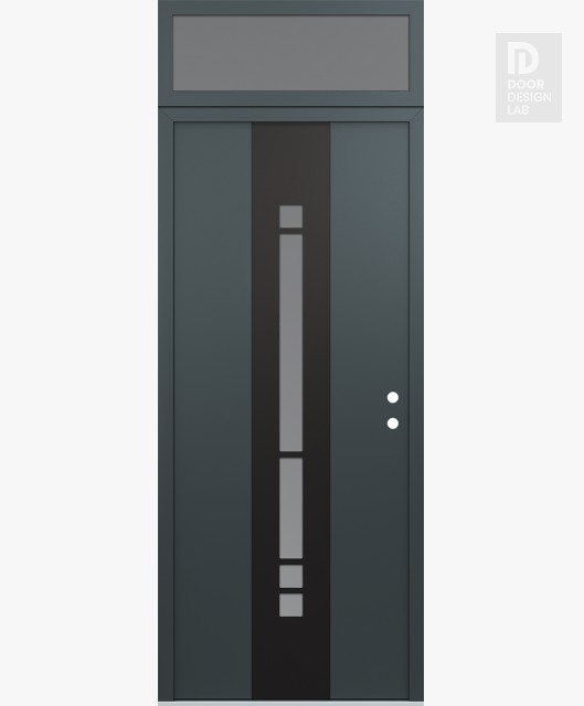 Modern Steel Front Door DIAMOND A3 36" X 96" ANTHRACITE/ANTHRACITE FROSTED GLASS PANEL BLACK RHI WITH TRANSOM FROSTED GLASS