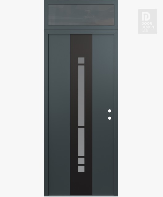 Modern Steel Front Door DIAMOND A3 36" X 96" ANTHRACITE/ANTHRACITE FROSTED GLASS PANEL BLACK RHI WITH TRANSOM MIRRORED GLASS