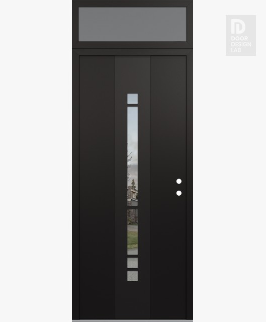 Modern Steel Front Door DIAMOND A3 36" X 96" BLACK/BLACK CLEAR GLASS PANEL BLACK RHI WITH TRANSOM FROSTED GLASS
