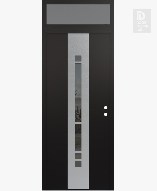 Modern Steel Front Door DIAMOND A3 36" X 96" BLACK/BLACK MIRRORED GLASS PANEL STAINLESS STEEL RHI WITH TRANSOM FROSTED GLASS