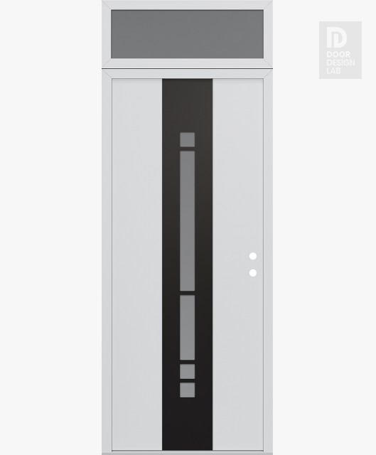 Modern Steel Front Door DIAMOND A3 36" X 96" BLACK/WHITE FROSTED GLASS PANEL BLACK RHI WITH TRANSOM FROSTED GLASS