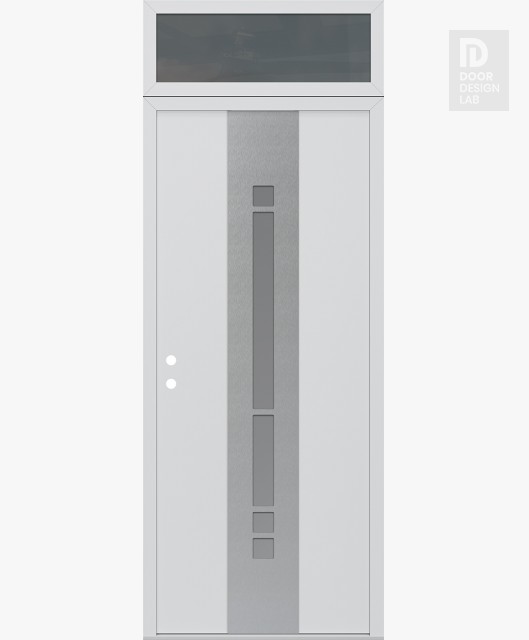 Modern Steel Front Door DIAMOND A3 36" X 96" BLACK/WHITE FROSTED GLASS PANEL STAINLESS STEEL LHI WITH TRANSOM MIRRORED GLASS