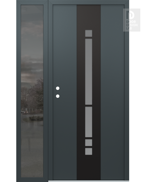 Modern Steel Front Door DIAMOND A3 48" X 80" ANTHRACITE/ANTHRACITE FROSTED GLASS PANEL BLACK LHI WITH SIDELITE MIRRORED GLASS