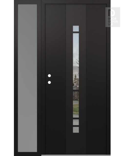 Modern Steel Front Door DIAMOND A3 48" X 80" BLACK/BLACK CLEAR GLASS PANEL BLACK LHI WITH SIDELITE FROSTED GLASS