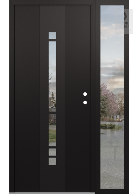 Modern Steel Front Door DIAMOND A3 48" X 80" BLACK/BLACK CLEAR GLASS PANEL BLACK RHI WITH SIDELITE CLEAR GLASS