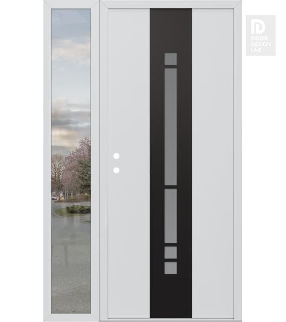 Modern Steel Front Door DIAMOND A3 48" X 80" BLACK/WHITE FROSTED GLASS PANEL BLACK LHI WITH SIDELITE CLEAR GLASS