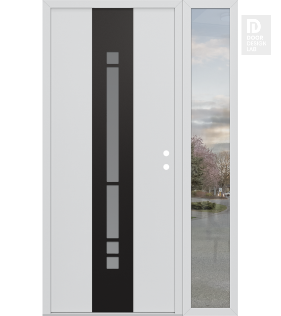 Modern Steel Front Door DIAMOND A3 48" X 80" BLACK/WHITE FROSTED GLASS PANEL BLACK RHI WITH SIDELITE CLEAR GLASS
