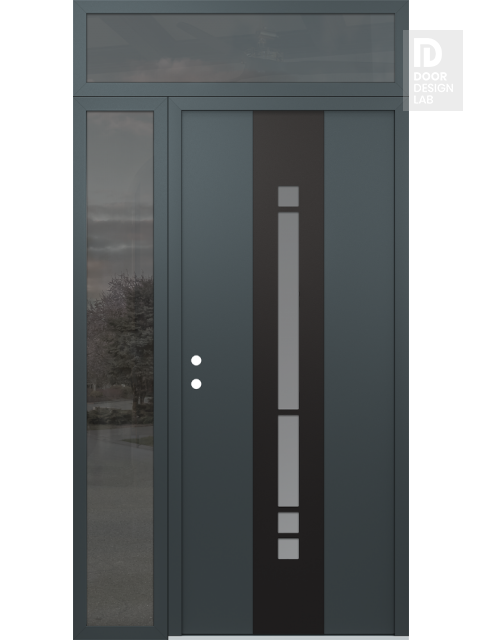 Modern Steel Front Door DIAMOND A3 48" X 96" ANTHRACITE/ANTHRACITE FROSTED GLASS PANEL BLACK LHI WITH SIDELITE AND TRANSOM MIRRORED GLASS