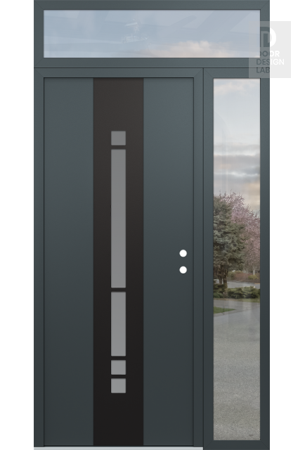 Modern Steel Front Door DIAMOND A3 48" X 96" ANTHRACITE/ANTHRACITE FROSTED GLASS PANEL BLACK RHI WITH SIDELITE AND TRANSOM CLEAR GLASS
