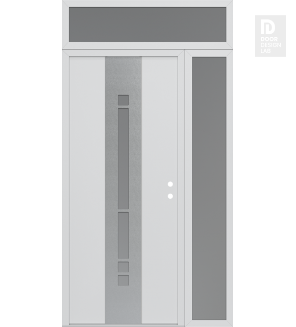 Modern Steel Front Door DIAMOND A3 48" X 96" BLACK/WHITE FROSTED GLASS PANEL STAINLESS STEEL RHI WITH SIDELITE AND TRANSOM FROSTED GLASS