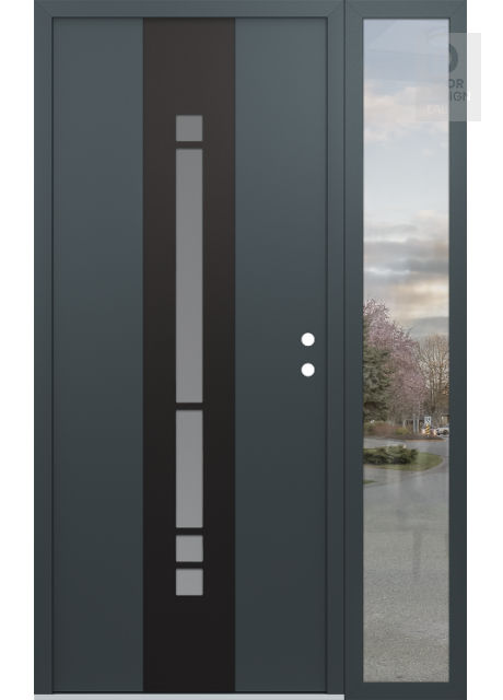 Modern Steel Front Door DIAMOND A3 50" X 80" ANTHRACITE/ANTHRACITE FROSTED GLASS PANEL BLACK RHI WITH SIDELITE CLEAR GLASS